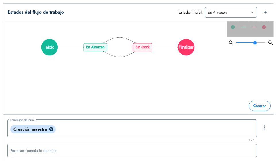 Esta sección es bastante sencilla: si tu flujo tiene un formulario de inicio (startform), aquí defines qué permiso será necesario para poder responderlo (Permisos formulario de inicio).