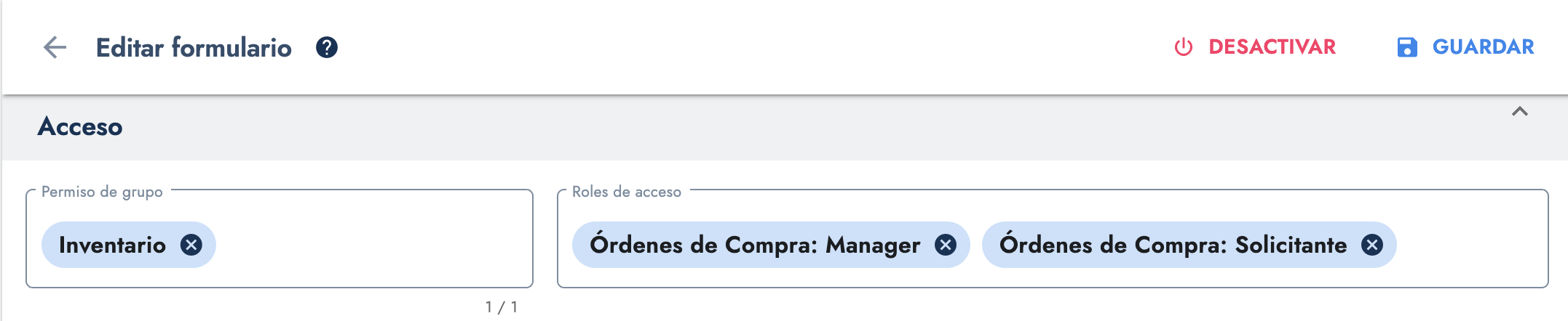 Hasta aquí, todo bien, pero como sabemos, el cliente siempre solicita cambios de último momento y ahora requiere que los usuarios con el rol "Órdenes de Compra: Solicitante" puedan editar el stock, mientras que el resto no.