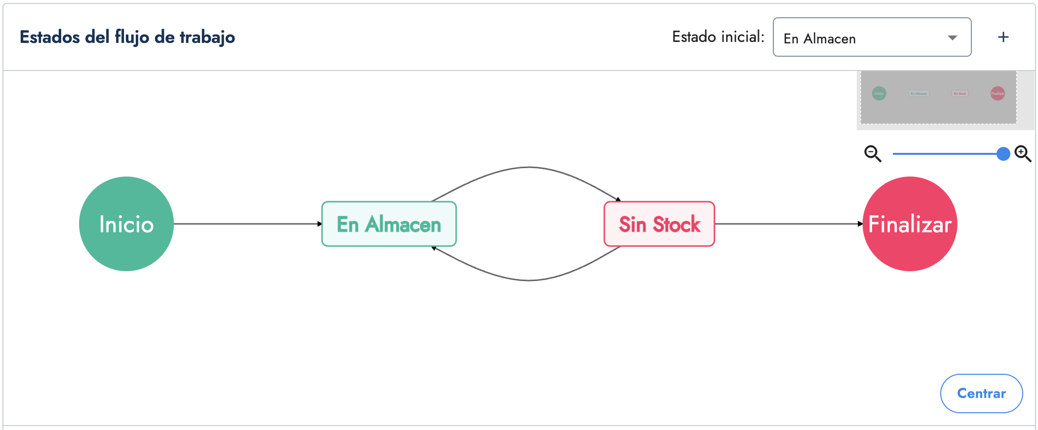 Imagina un flujo de inventario en el que cada tarea creada representa un producto. Su estado inicial es “En Almacén”, y con el tiempo, el stock de cada producto disminuye hasta que, finalmente, el sistema lo envía automáticamente al estado “Sin Stock”.