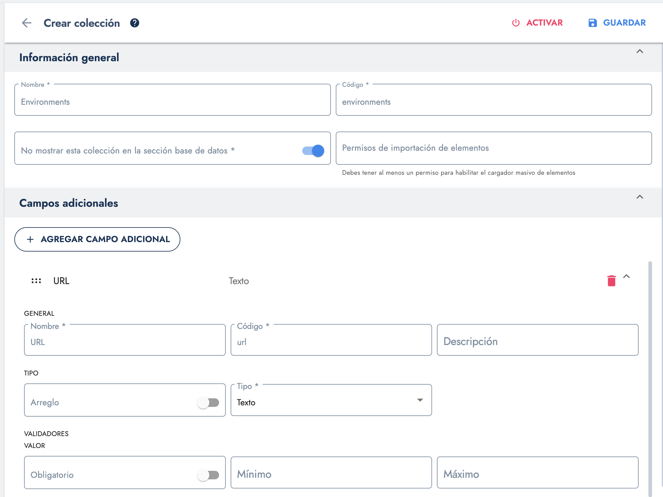 La creación de la colección de entorno es un ritual sorprendentemente simple, aunque su impacto sea digno de un conjuro mayor. Para comenzar, debemos abrir el Panel de Administrador, dirigirnos al apartado de Colecciones y crear una nueva.
