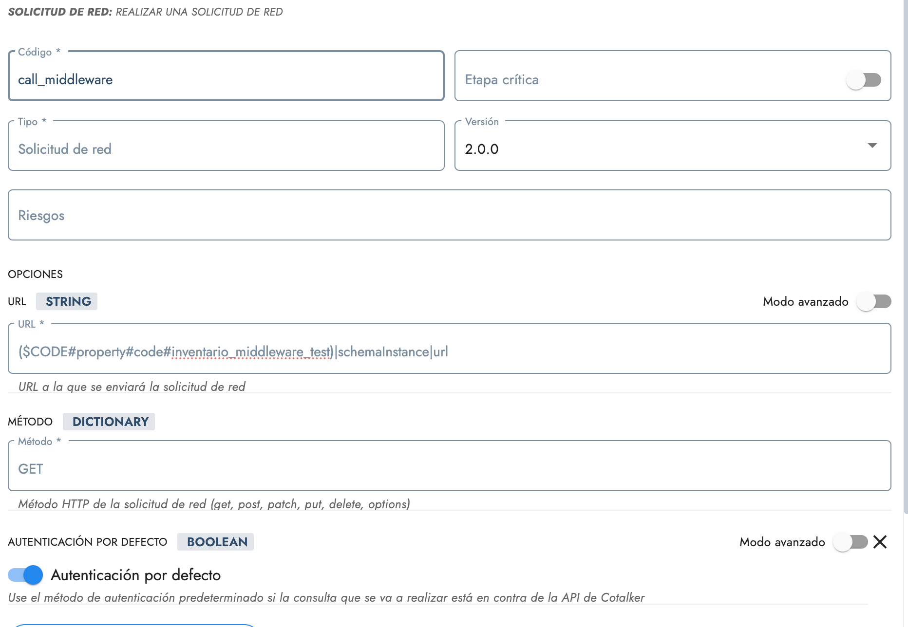 <Nombre del Flujo>: Middleware <Nombre del Endpoint>Por ejemplo, retomando el caso del Capítulo 3: Si estás trabajando en el flujo de Inventario y el endpoint se llama “test”, podrías nombrar esta variable como: Inventario: Middleware Test.