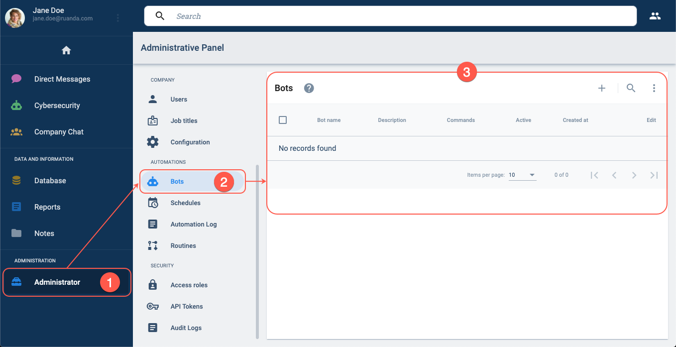 Cuando creas un bot (Panel de Administrador → Bots), defines su nombre, su code, su descripción y le configuras una rutina usando el Routine Builder. Hasta aquí, nada nuevo. Es lo que aparece en la documentación y lo que cualquier partner aprende en su primer mes.